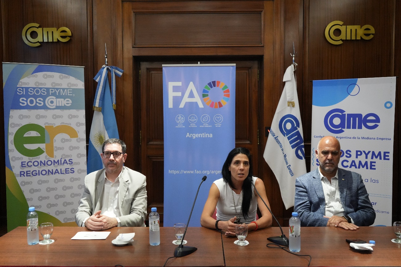 Para dar inicio al encuentro, la representante interina de FAO Argentina, Maya Takagi, agradeció el compromiso de CAME en la gestión sostenible de las pequeñas y medianas empresas alimenticias. Asimismo, resaltó la importancia de llevar a cabo acciones con el sector privado y los gobiernos para coordinar estrategias para el posicionamiento del rubro, en particular de la Argentina. “El sector privado y el rol que cumplen las pymes agroalimentarias es fundamental para la seguridad alimentaria de las personas”, señaló Takagi. Y agregó: “Son actores clave en todas las etapas de la cadena: agregan valor, trabajo, inclusión, tecnología e innovación, desde la producción primaria hasta su comercialización final e incluso en su relación con el consumidor”.