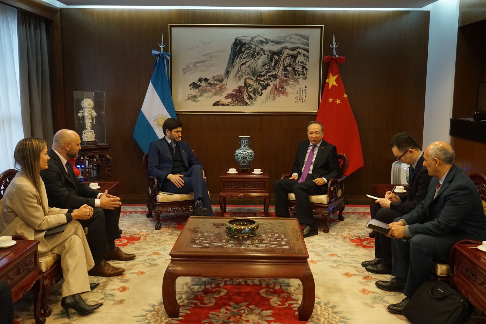 Con el fin de afianzar las relaciones bilaterales y seguir impulsando las exportaciones santafesinas, el gobernador Maximiliano Pullaro se reunió este jueves con el embajador de China en Argentina, Wang Wei, en la sede diplomática del país en Buenos Aires. La reunión bilateral se enmarca en el conjunto de reuniones que el Gobierno de Santa Fe está realizando con los principales mercados internacionales para invitar a empresarios e inversores al Santa Fe Business Forum, evento que se realizará del 3 al 5 de septiembre en las instalaciones de La Fluvial en Rosario.