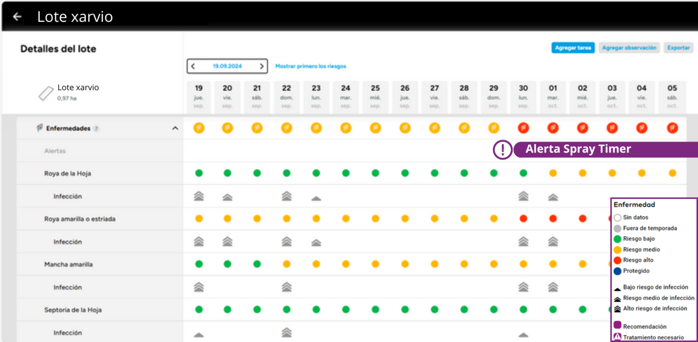 La campaña fina 2025/26 comenzó con señales alentadoras: perfiles hídricos recargados, siembras en fecha y cultivos que arrancan con buena condición. Sin embargo, este escenario también trae consigo un desafío técnico: el riesgo sanitario elevado, especialmente por enfermedades foliares que encuentran condiciones ideales para su desarrollo. En este contexto, herramientas digitales como xarvio® Spray Timer, desarrollada por BASF, se consolidan como aliadas estratégicas para productores y asesores técnicos que buscan anticiparse a los problemas y tomar decisiones basadas en datos. Un sistema que alerta en el momento precisoSpray Timer forma parte de la plataforma xarvio® FIELD MANAGER y funciona como un sistema de alerta temprana. A través de un modelo agronómico avanzado que integra datos climáticos, fenológicos y sanitarios, emite señales de riesgo (bajo, medio o alto) directamente al celular o computadora del usuario. Esto permite planificar monitoreos y aplicaciones de fungicidas con anticipación, evitando aplicaciones innecesarias y optimizando el uso de insumos. En un escenario de márgenes ajustados, esta eficiencia se traduce en una mejor rentabilidad. Situación actual: ¿qué está pasando en los lotes?Según relevamientos recientes de la Asociación Argentina de Protección Profesional de Cultivos Extensivos (AAPPCE), se han detectado altos niveles de roya estriada en trigo en zonas con lluvias recientes, junto con una presencia uniforme de mancha amarilla en varios nodos productivos. En cebada, el monitoreo debe enfocarse en mancha en red, escaldadura, ramularia (en fase de validación) y roya de la hoja, todas enfermedades que pueden comprometer seriamente el rendimiento si no se detectan a tiempo. Las condiciones climáticas actuales —con buena humedad en el canopeo y temperaturas moderadas— favorecen el desarrollo de estas patologías. Por eso, la anticipación es clave. |